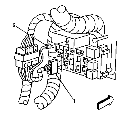 37. Disconnect the headliner connector (2) from the IP junction block.