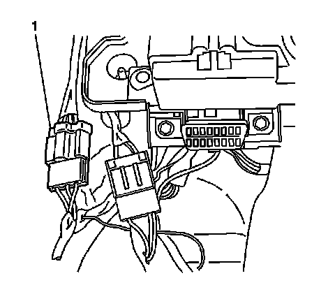42. Disconnect the roof console harness connector (1) from the IP junction block.