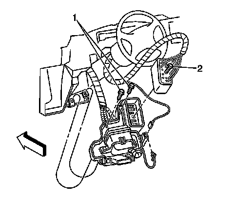 50. Disconnect the steering column harness connector by loosening the bolt (2) in the center of the connector.