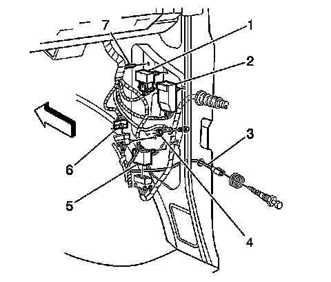 34. Disconnect the left door harness connector (2).