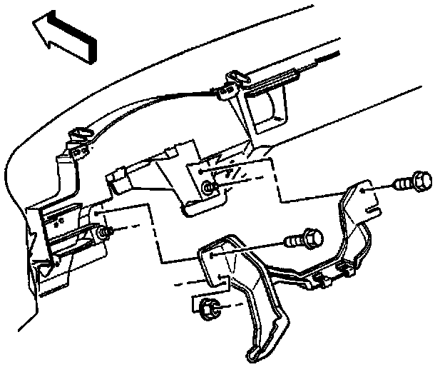 13. Locate the instrument panel that retains the IP carrier to the carrier support brackets. Install the 2 bolts on the left sides, and on the right sides of the instrument panel.