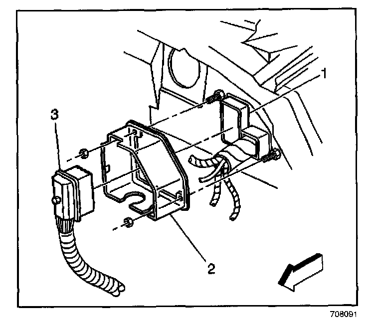 57. Connect the electrical connector of the cruise control module (3).