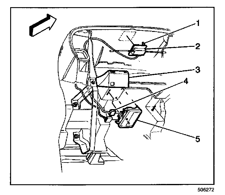 3. Connect the remote keyless entry antenna (2) to the receiver (5).