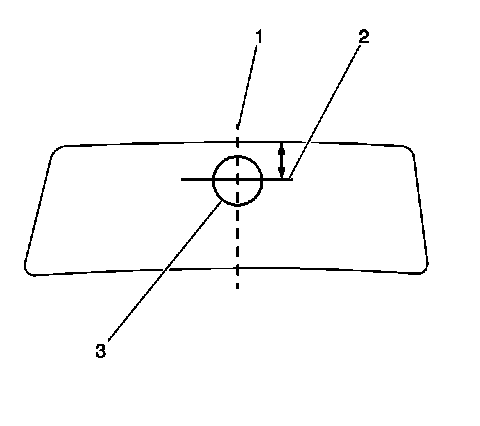 2. Using a marking pencil, halfway between the windshield pillars, draw a centerline(1) on the windshield from the roof panel to the windshield base.