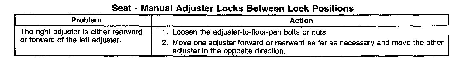 Seat - Manual Adjuster Locks Between Lock Positions: