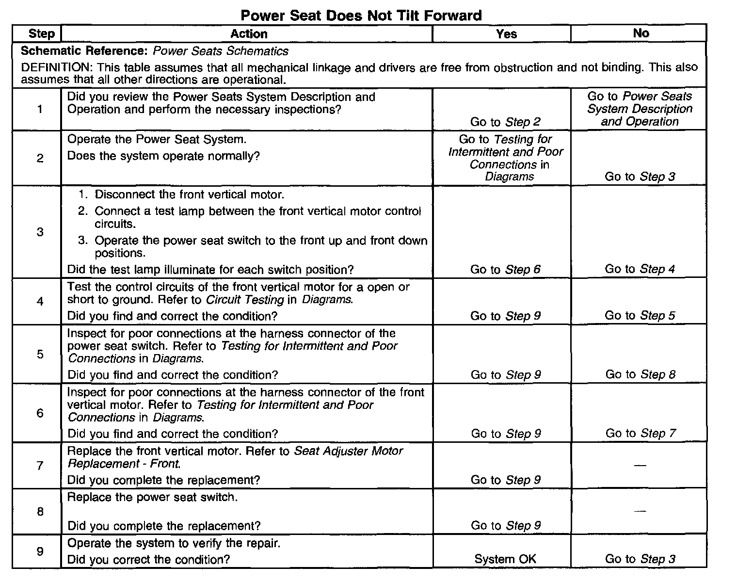 Power Seat Does Not Tilt Forward