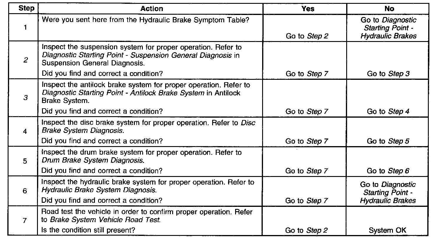 The numbers below refers to the step numbers on the diagnostic table: