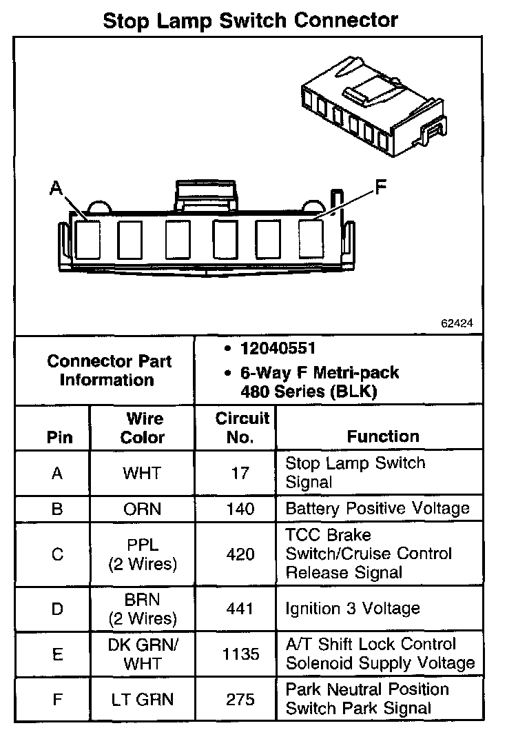 Stop Lamp Switch Connector: