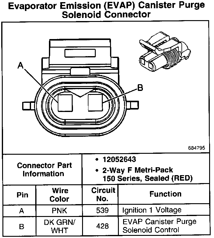 Evaporation Emission (EVAP) Canister Purge Solenoid Connector:
