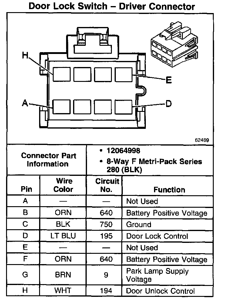 Door Lock Switch - Driver Connector: