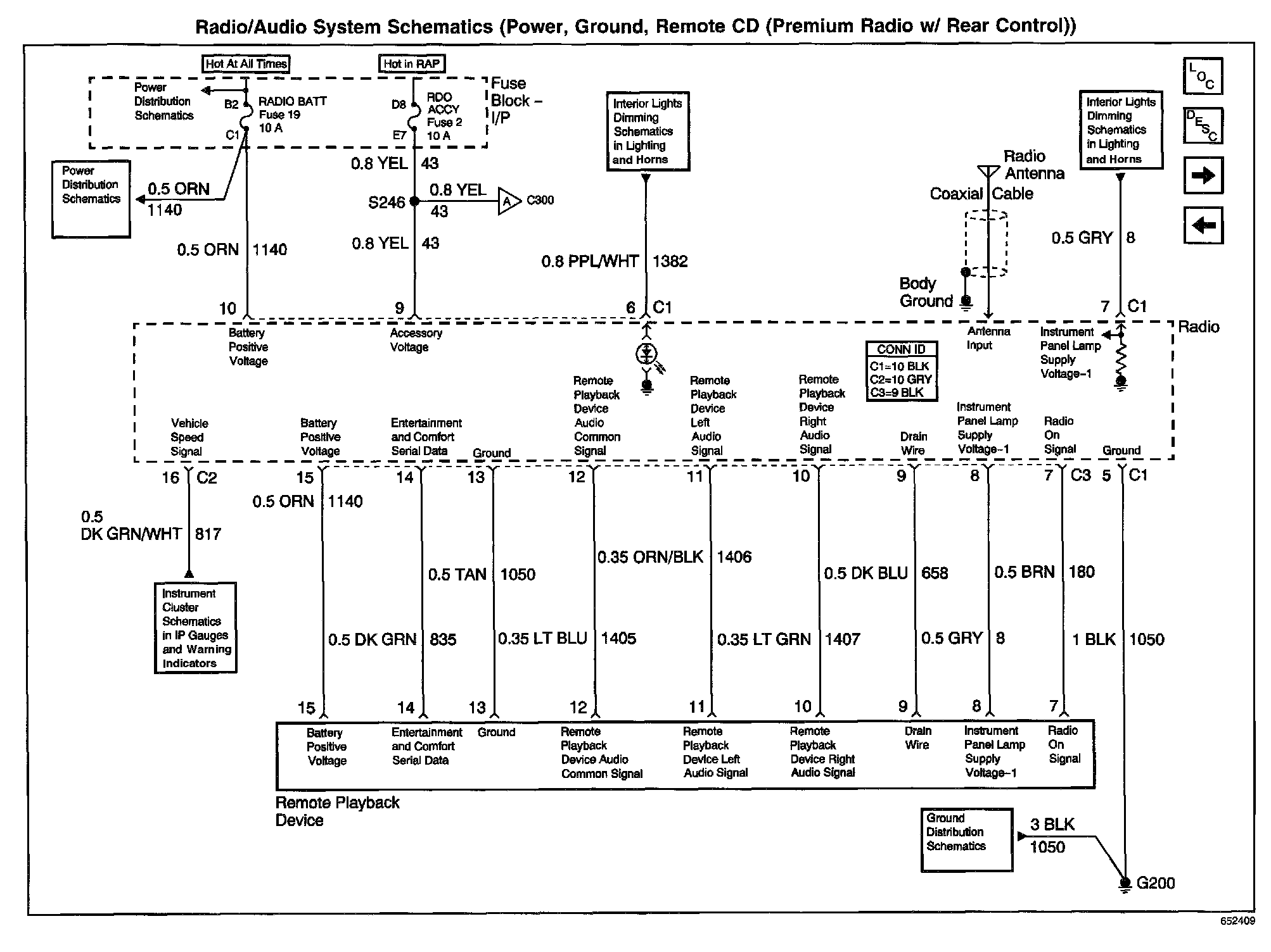 Radio/Audio System Schematics: Power, Ground, Remote CD (Premium Radio W/Rear Control):