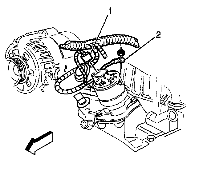 14. Remove the ground wire (2) from the stud at the water outlet.