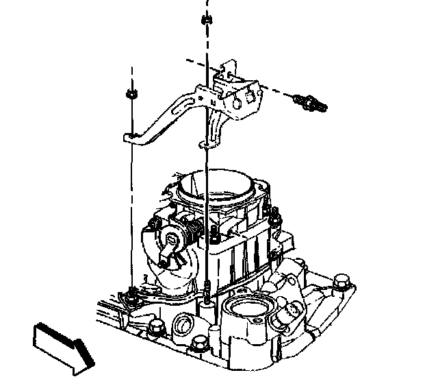 23. Remove the accelerator control cable bracket from the throttle body and the intake manifold.