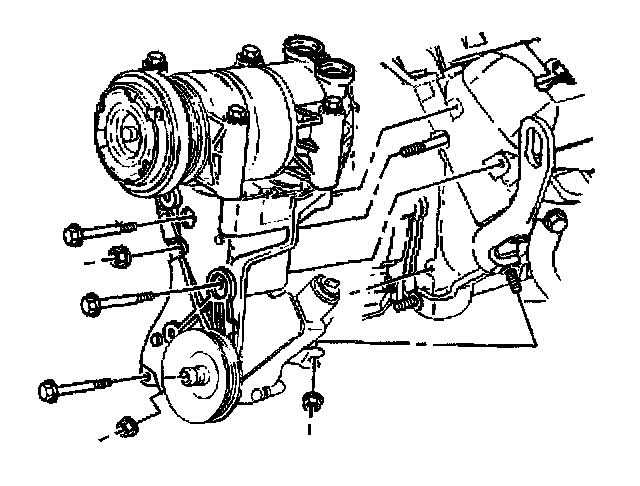 28.6. Leave the A/C compressor, if equipped, and the power steering pump on the bracket.