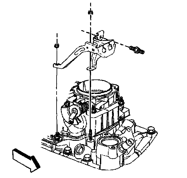 18. Install the transmission fluid fill tube and bolt to the accelerator control cable bracket.