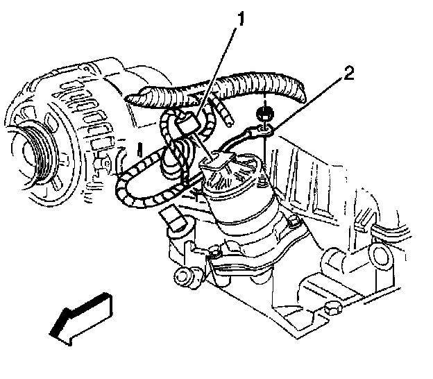 10. Remove the nut holding the engine wiring harness bracket to the intake manifold stud.