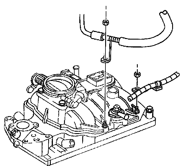 16. Install the accelerator control cable bracket, studs, and nuts to the intake manifold and the throttle body.