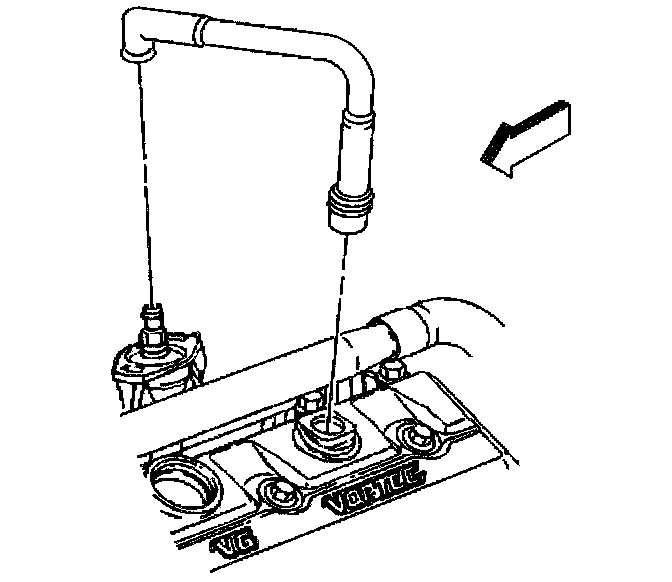 8. Disconnect PCV valve hose assembly from the intake manifold and the valve rocker arm cover.