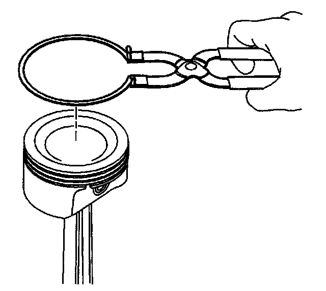 Notice: Use a piston ring expander to install the piston rings. The rings may be damaged if expanded more than necessary.