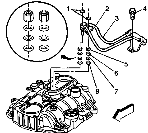 24. Remove and discard the fuel seals (8) (black O-rings).