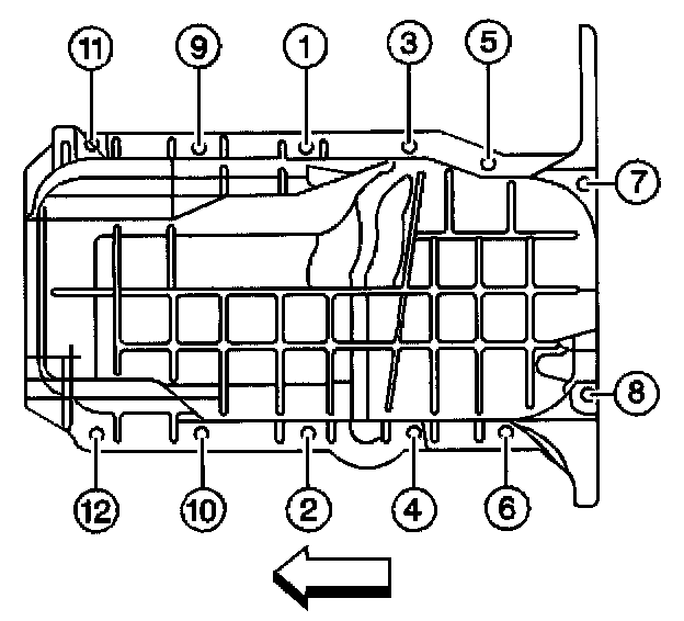 8. Tighten the oil pan bolts and nuts in sequence (1 -12).
