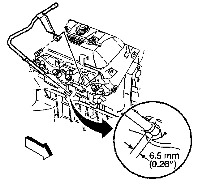 1. Apply sealant GM P/N 12346004 or equivalent around the oil level indicator tube 13 mm (0.5 inch) below the tube bead.