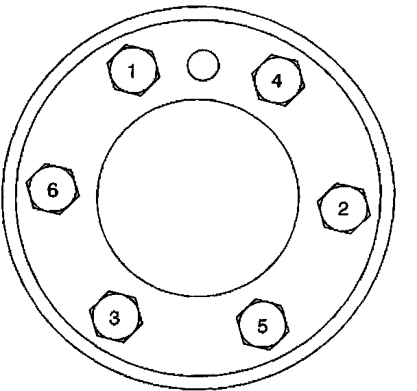 Tighten the engine flywheel bolts in sequence (1-6) to 100 Nm (74 lb ft).