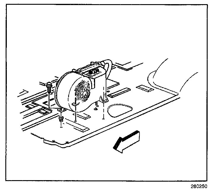 IMPORTANT: Before removing the auxiliary heater module from the vehicle, be sure to place a protective cover on the floor in order to prevent coolant from leaking onto the carpet.