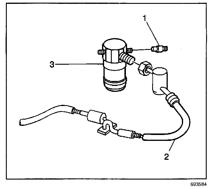3. Install the A/C low pressure switch (1) to the accumulator (3).