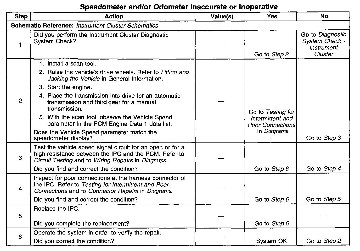 Speedometer and/or Odometer Inaccurate or Inoperative