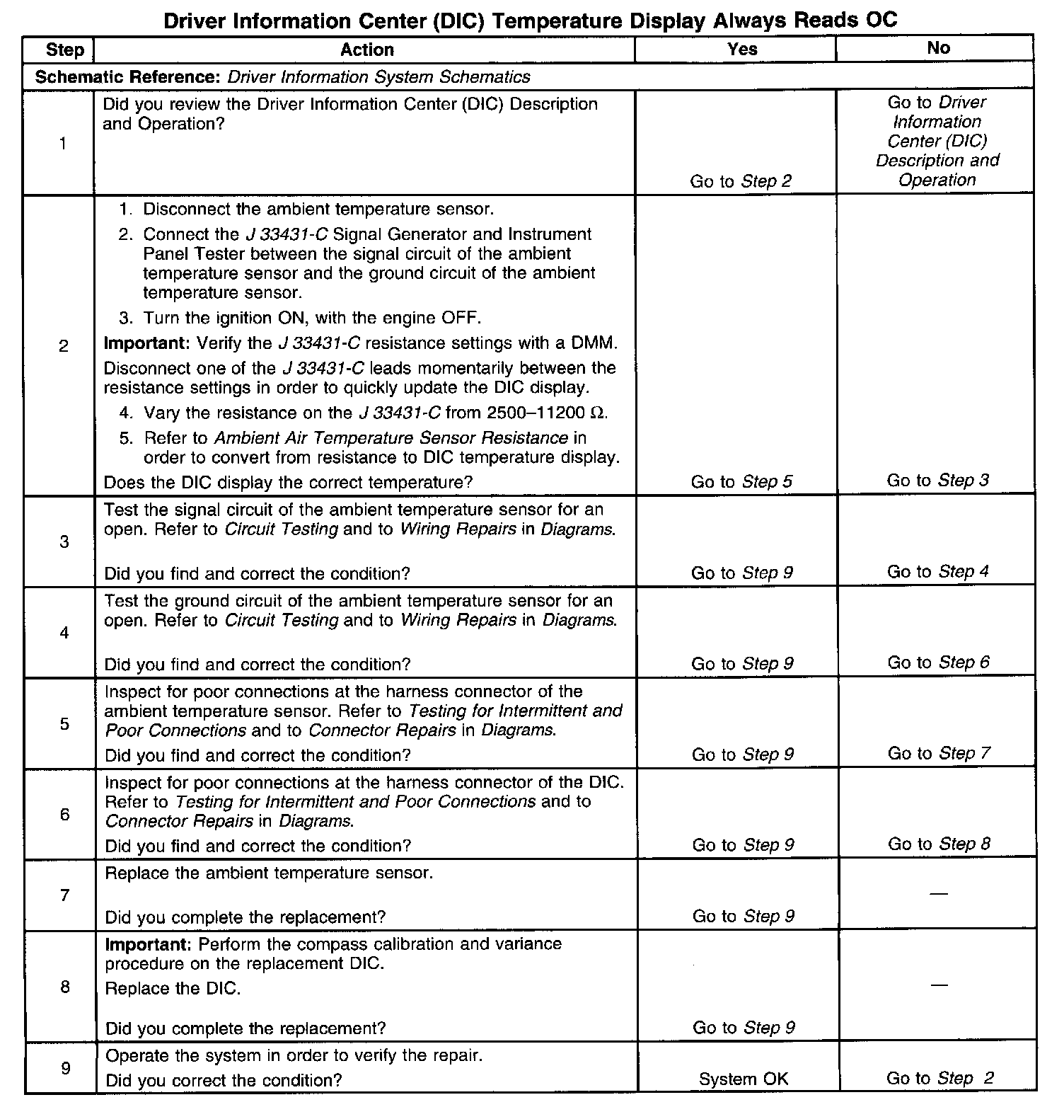 ^ Refer to Ambient Air Temperature Sensor Resistance in order to verify the correct ambient temperature sensor readings.
