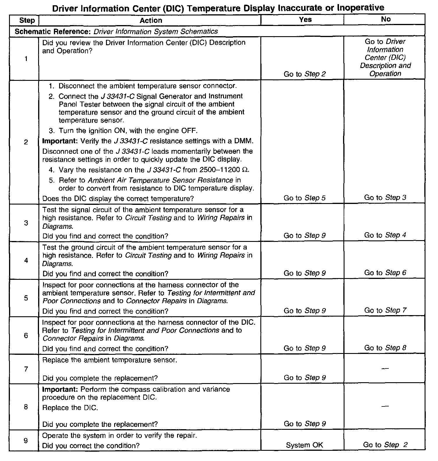 DIAGNOSTIC AIDS^ An inaccurate DIC temperature display indicates a high resistance condition within the system.