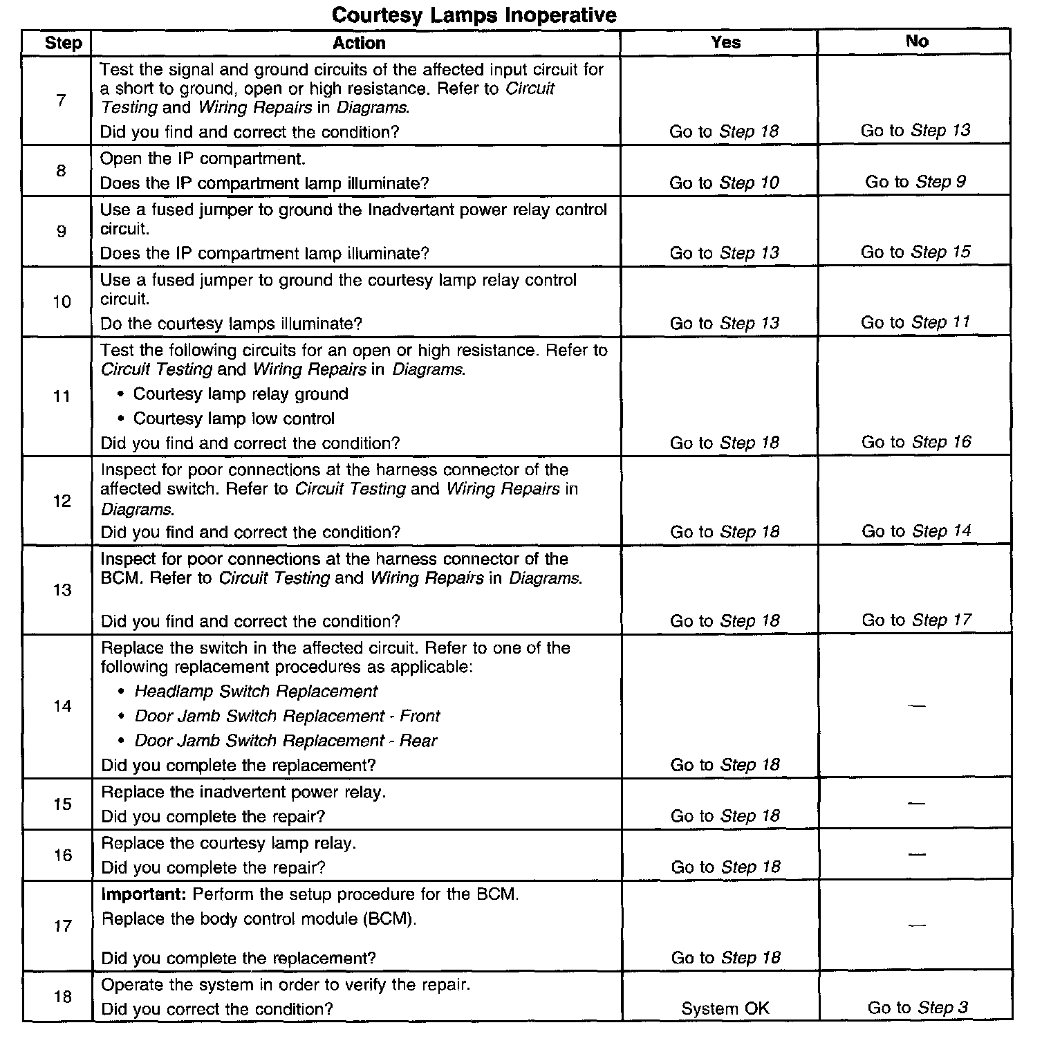 Courtesy Lamps Inoperative