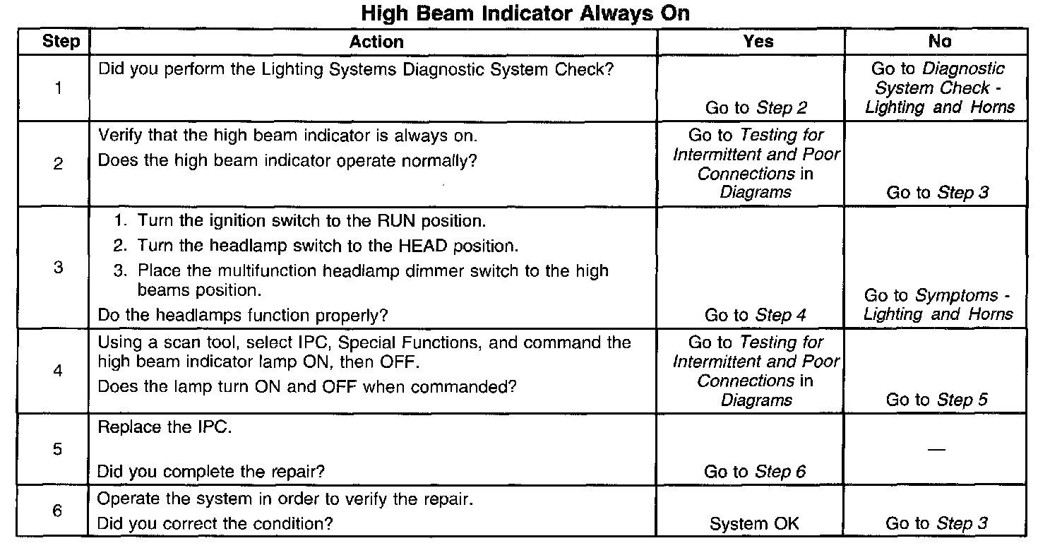 High Beam Indicator Always On