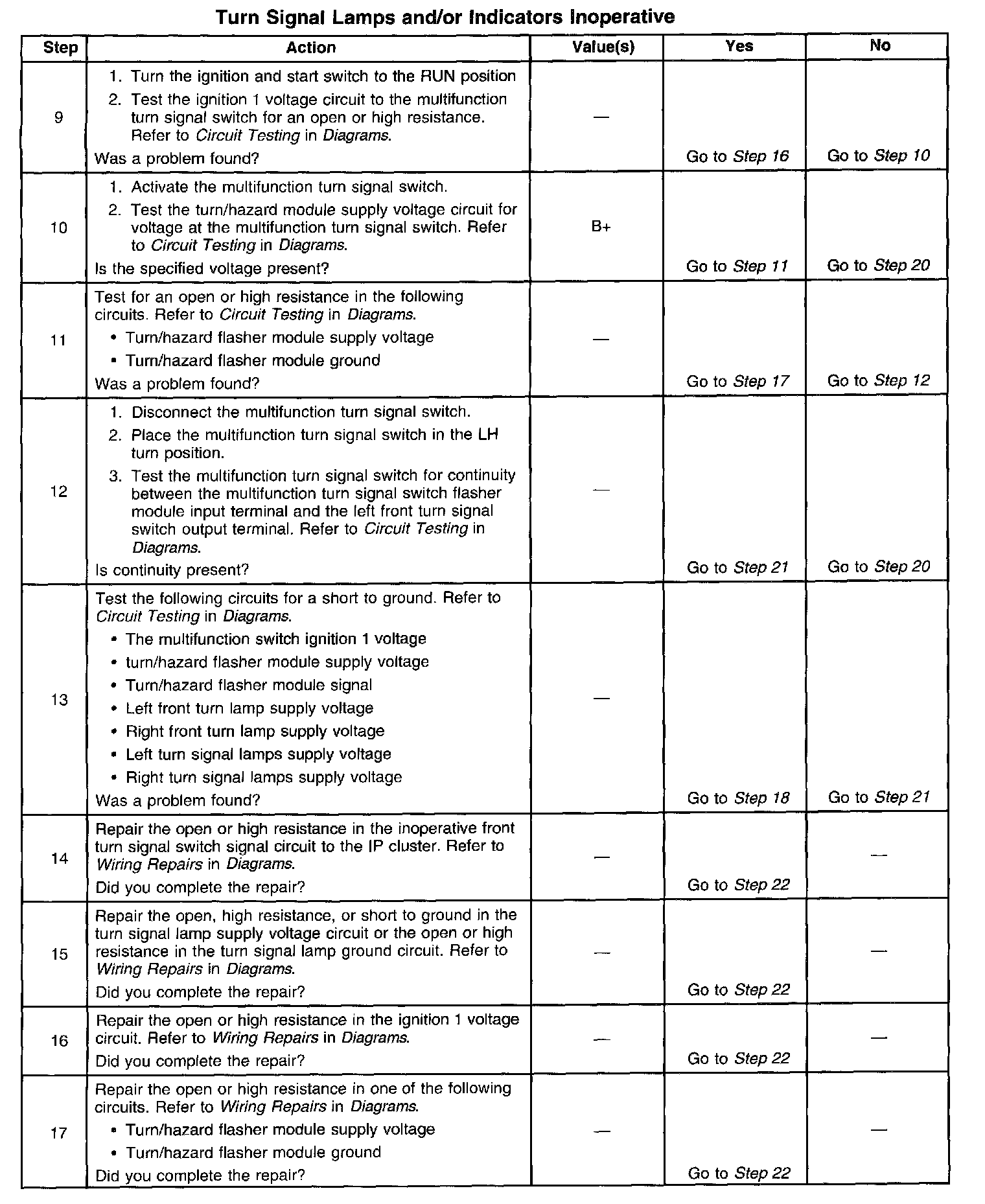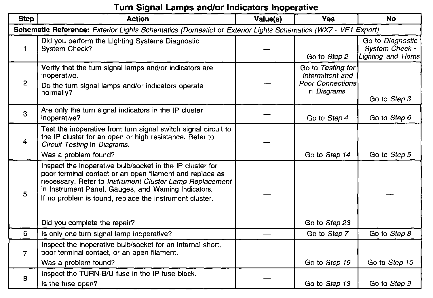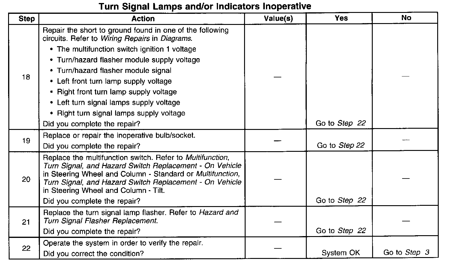 Turn Signal Lamps and/or Indicator Inoperative