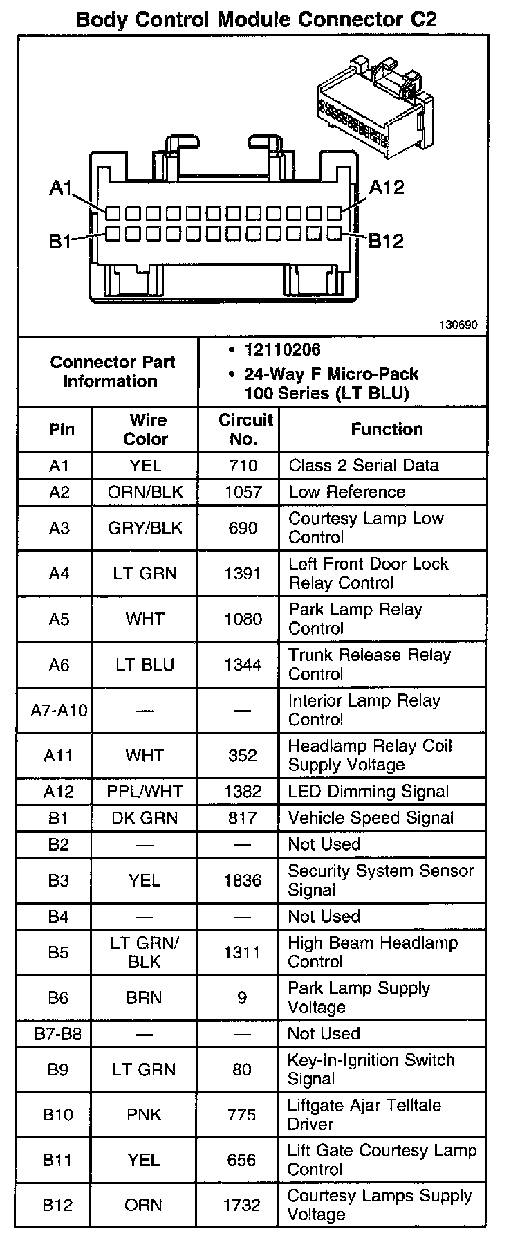 Body Control Module Connector C2: