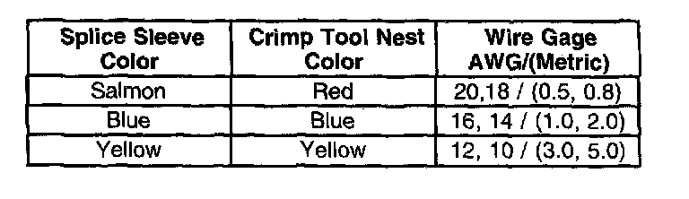 5. Select the proper splice sleeve (2) and the required crimp nest tool, refer to the Crimp and Seal Splice Table.