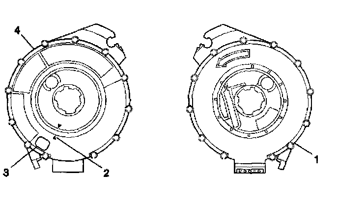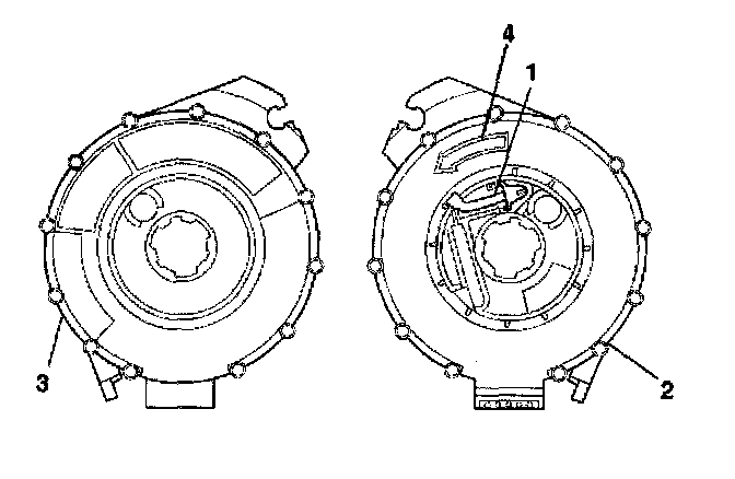 3. If the front (4) of the inflatable restraint steering wheel module coil has a centering window (3) and no spring service lock on the back side (1), perform the following steps: