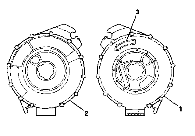 4. If no centering window is present on the front side (3) of the inflatable restraint steering wheel module coil, but a spring service lock (1) is on the back side (2), perform the following steps: