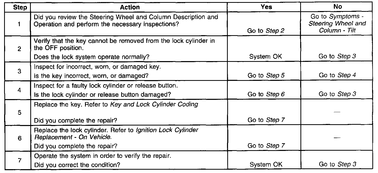 Key Cannot Be Removed In the Off Lock Position - Tilt Column