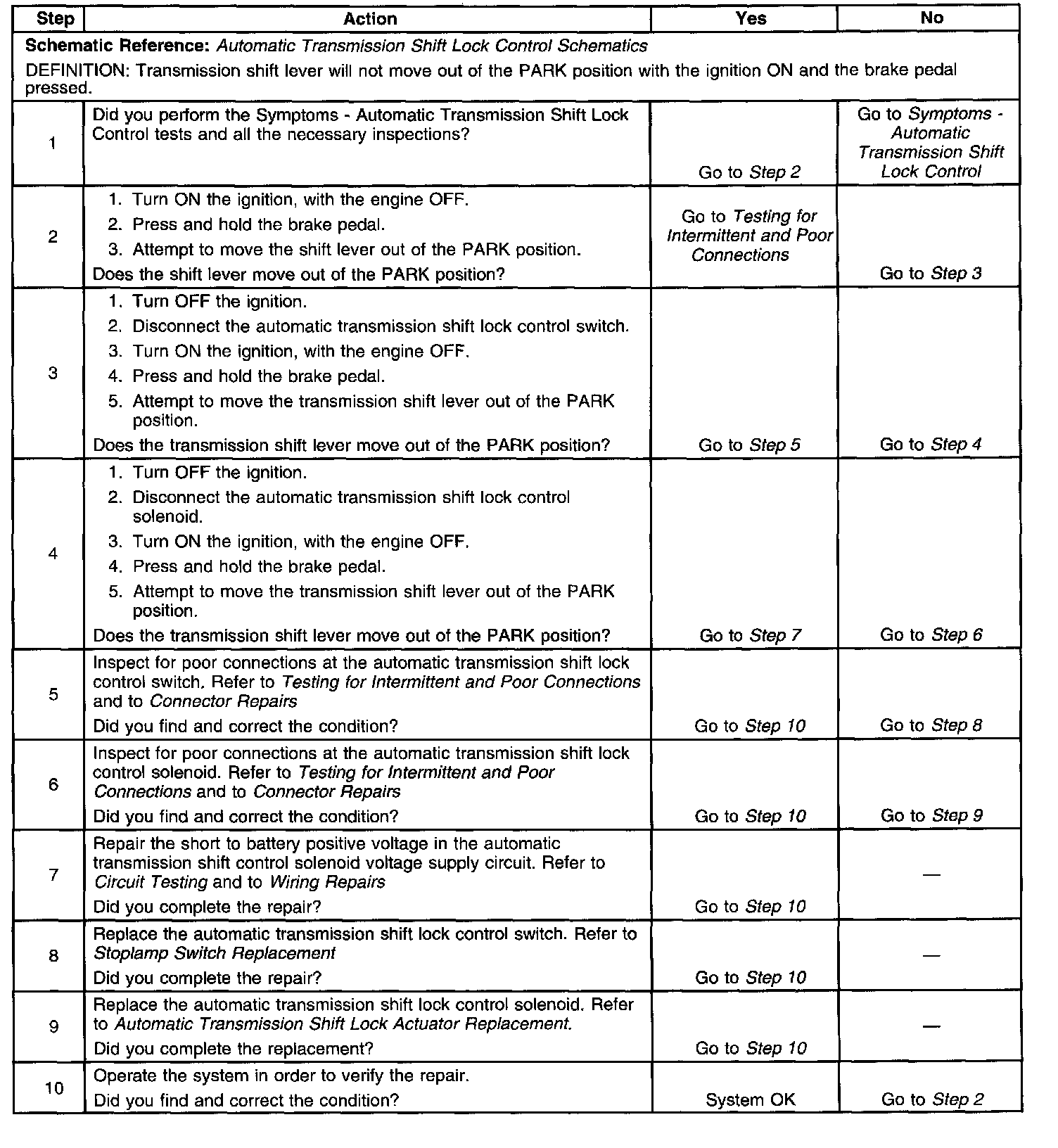 Shift Lever Does Not Move With Brake Pedal Depressed