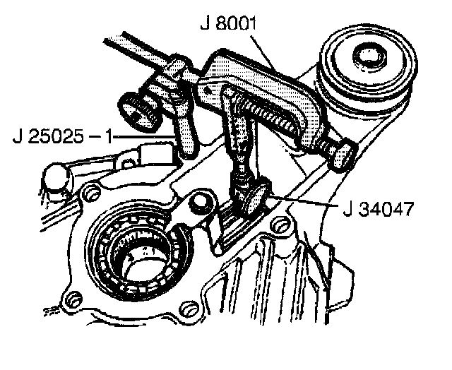 1. Install the J 3404 7, the J 25025-1, and the J 8001 as shown.