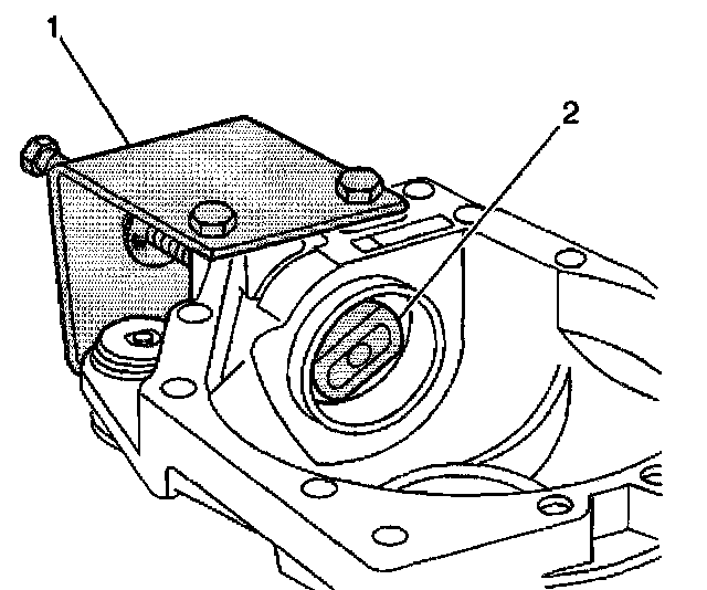 11. Remove the right inner shaft bearing using the J 21551 (2) and the J 8092 (1).
