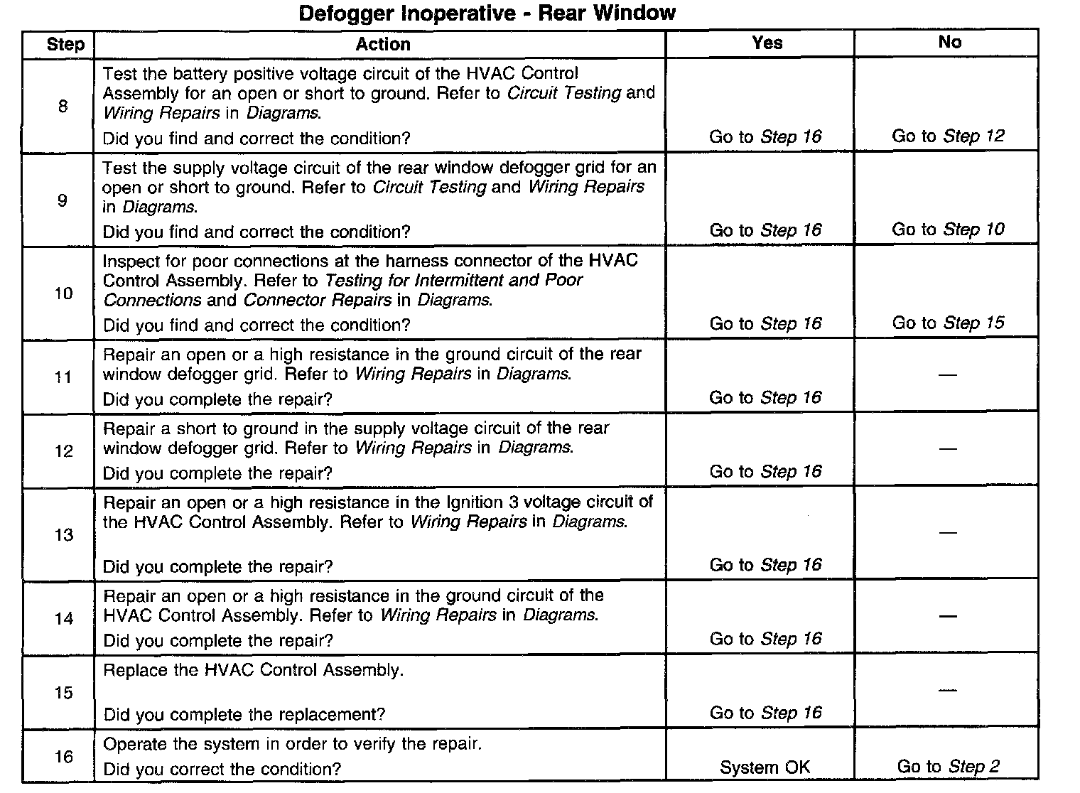 Defogger Inoperative - Rear Window