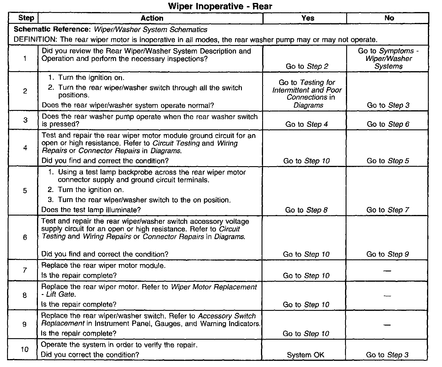 Wiper Inoperative - Rear