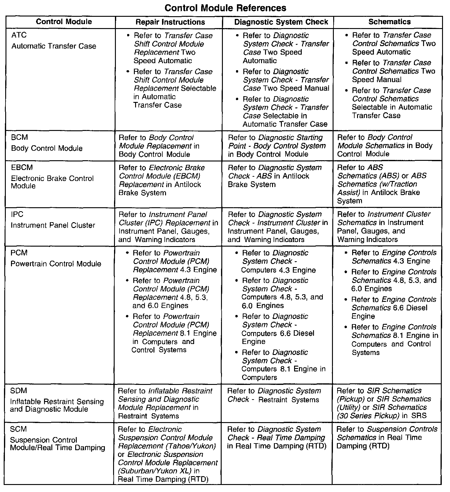 Control Module References