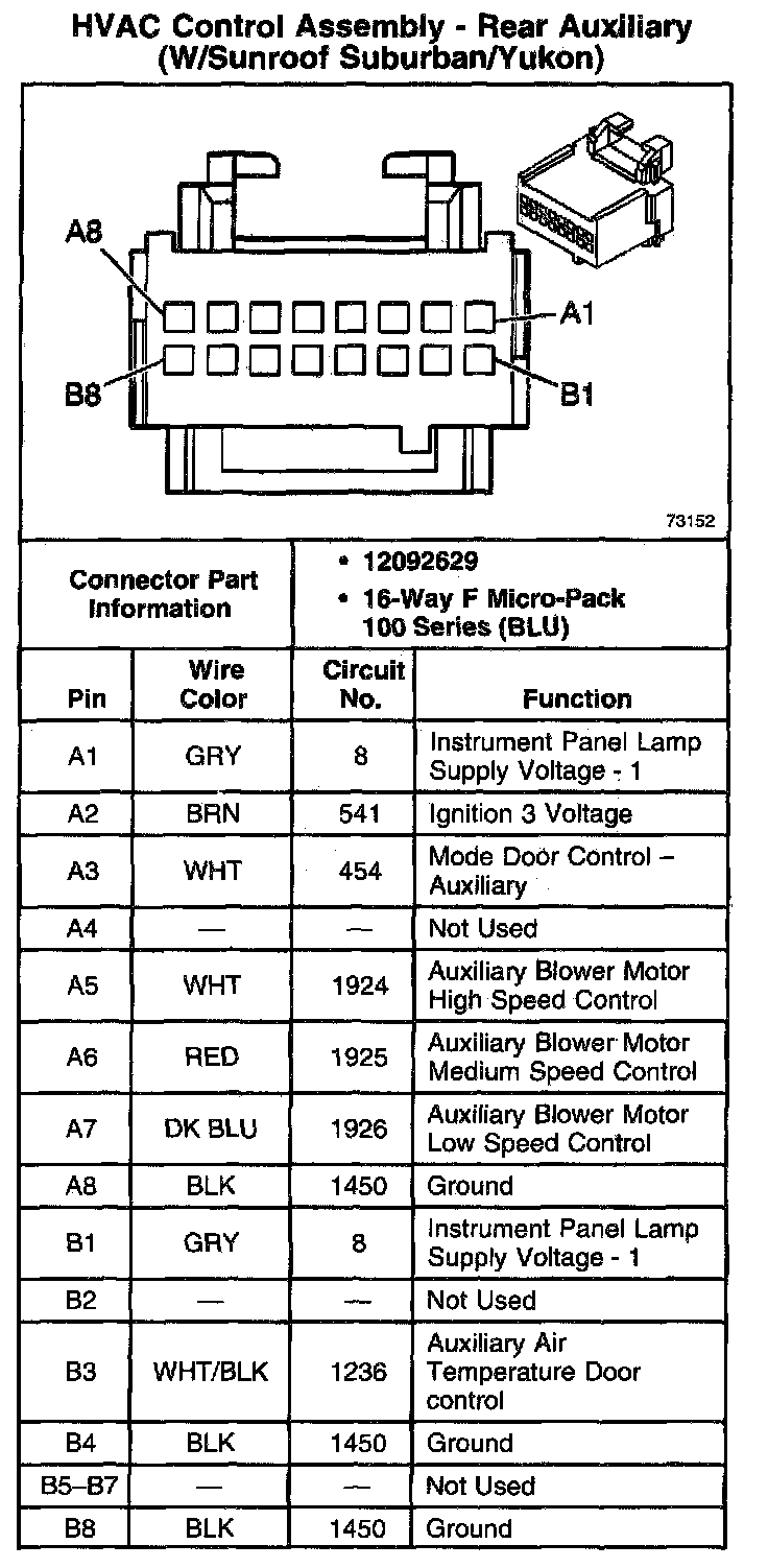 HVAC Control Assembly - Rear Auxiliary (W/Sunroof Suburban/Yukon):