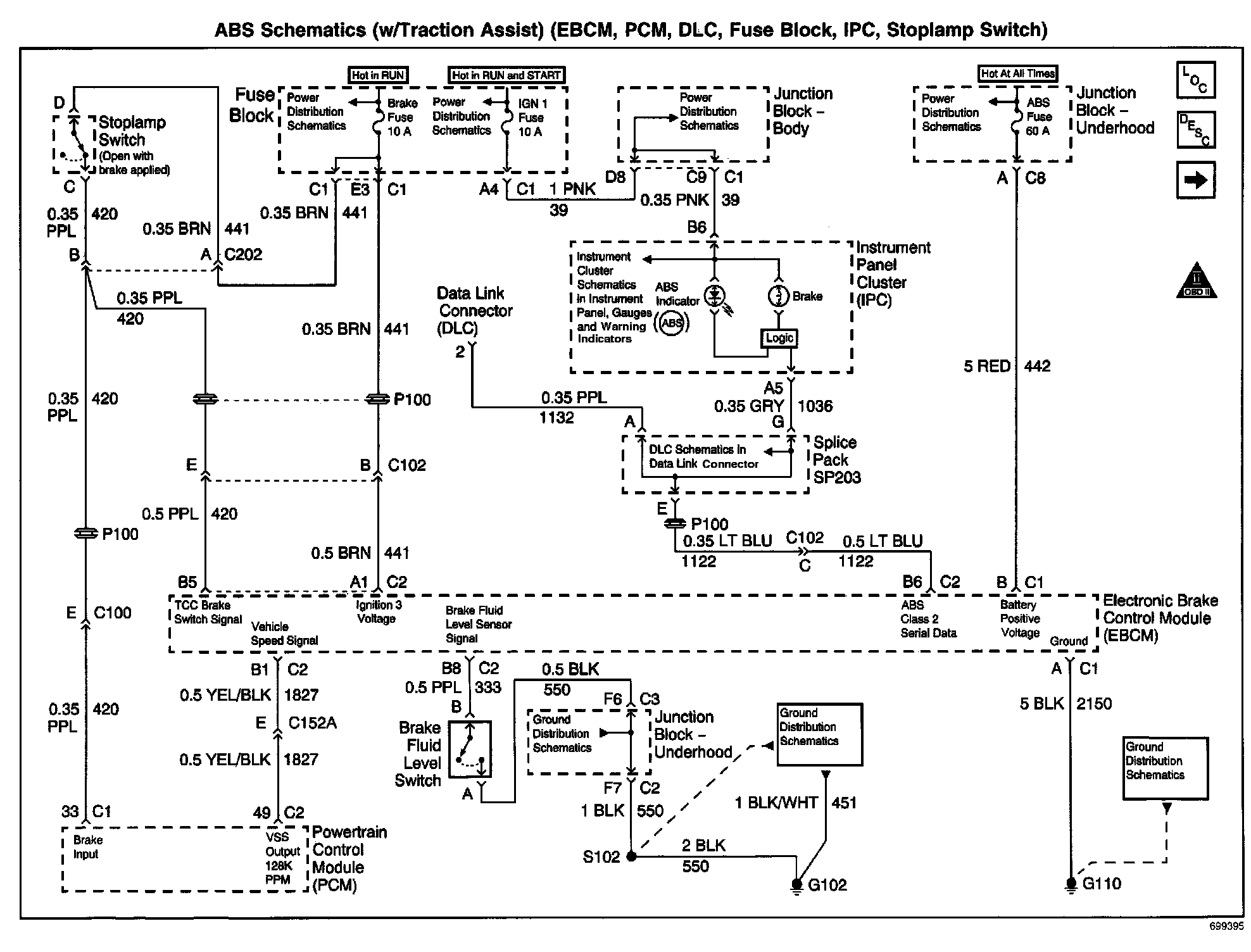 ABS Schematics: W/Traction Assist (EBCM, PCM, DLC, Fuse Block, IPC, Stoplamp Switch):