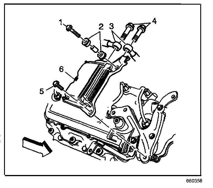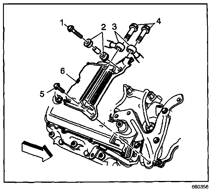 6. Tighten the eye bolts (4) to the fuel injection control module (6).