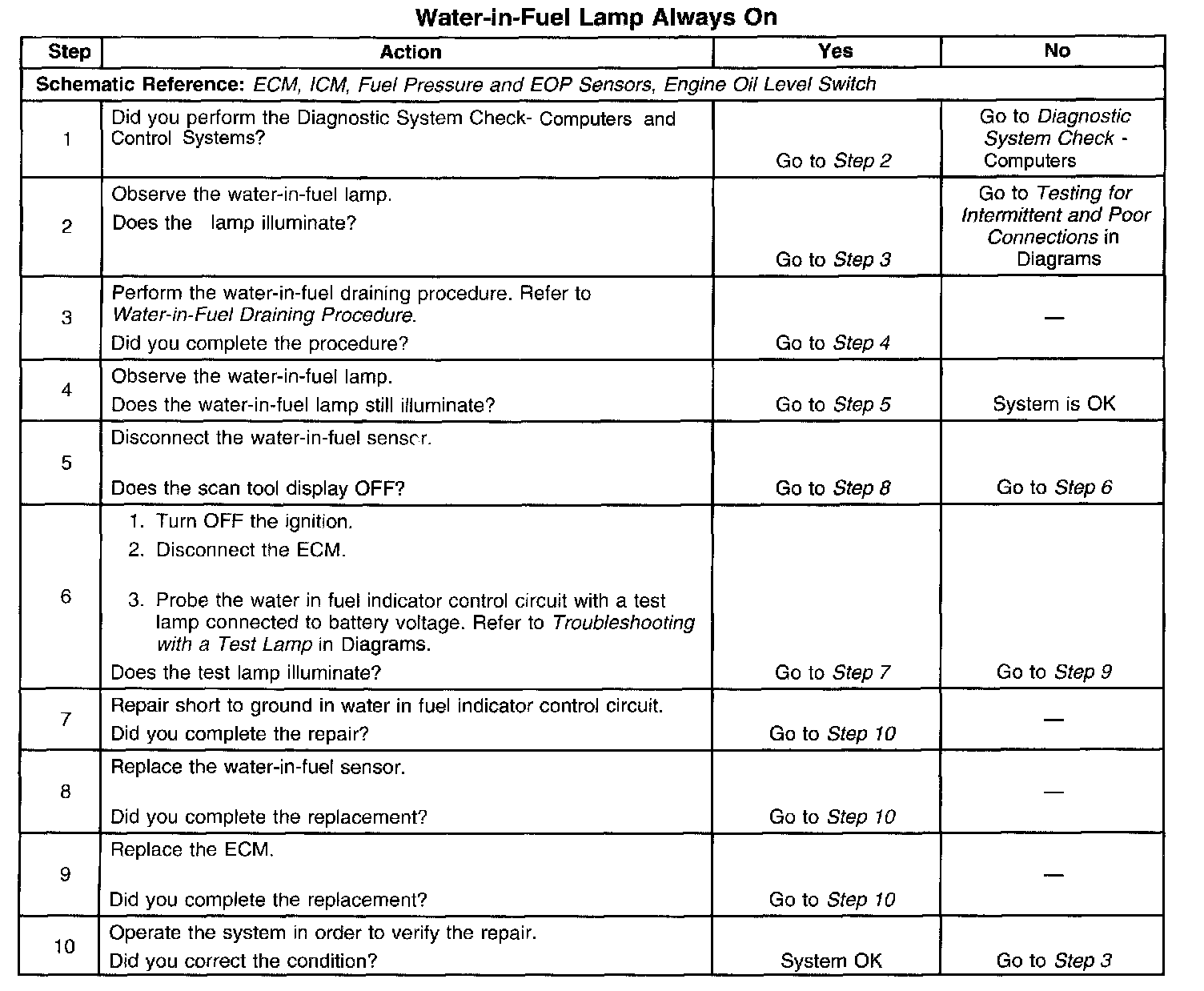 Water-In-Fuel Lamp Always On